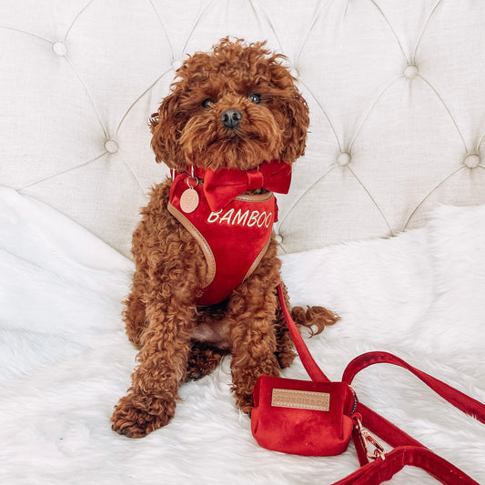 Sadie Luxury Red Velvet Personalised Harness Set with Leather Trim