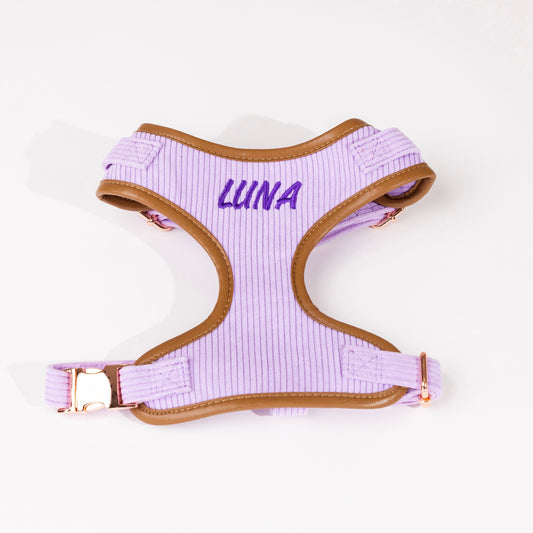 Kelsey Purple Corduroy Luxury Harness with Leather Trim