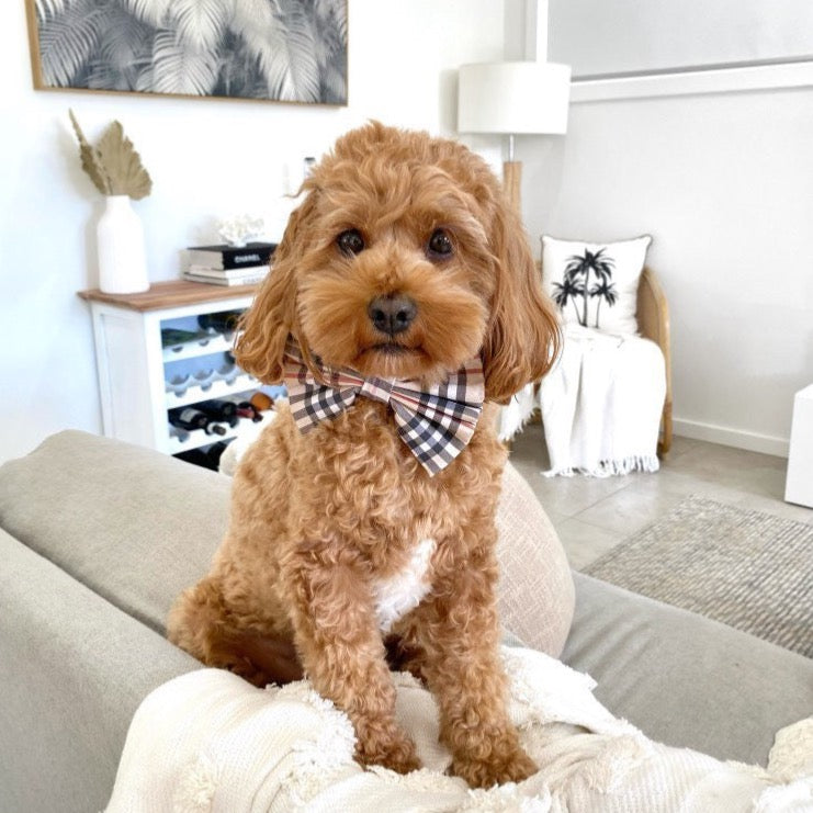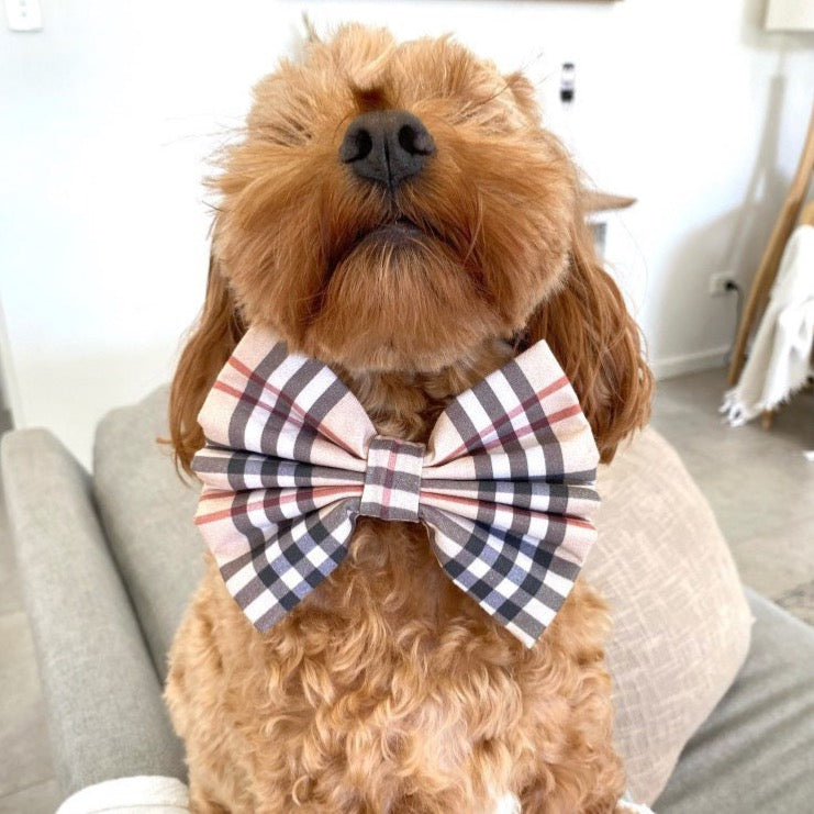 After much request we have added some new luxe Bows to our latest collection. We chose this gorgeous Tartan material to ensure your fur baby looks super cute and luxurious ! Our bows are double layered and made with a Velcro attachment on the back so the bow can just slip onto your Dog’s collar.